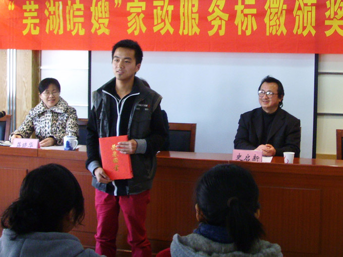 2010年3月16日下午,颁奖仪式在市妇联会议室隆重举行。市妇联陈怡主席对史启新老师的教学水平给予了高度的赞扬,对艺术设计系在 “芜湖皖嫂”标徽设计工作中给予的大力支持表示衷心感谢。