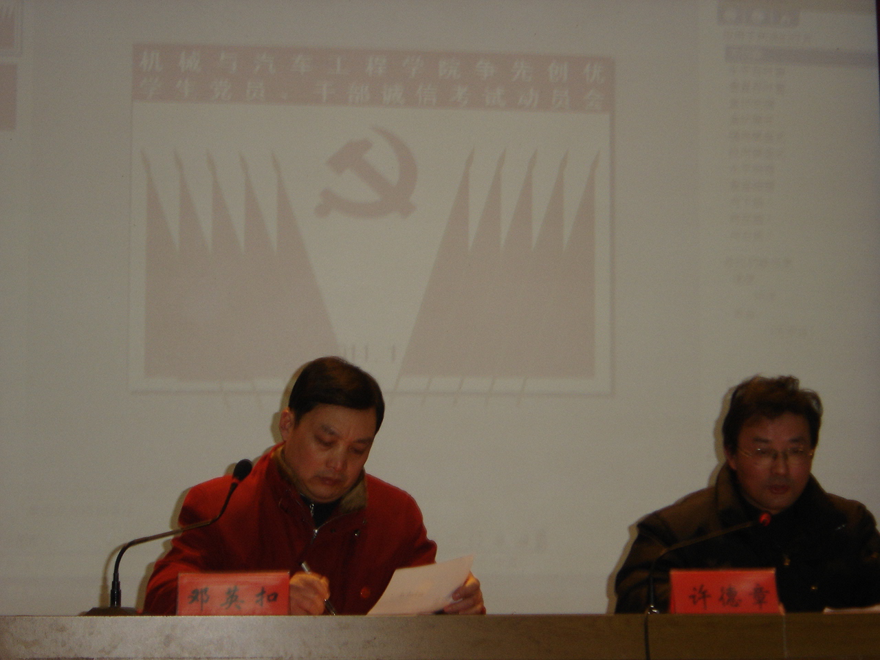 机械与汽车工程学院举行“创先争优 诚信考试”学生党员、干部动员会