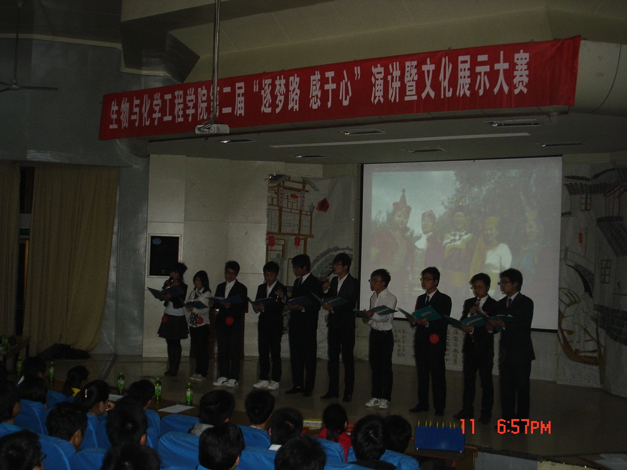 为响应校园文化艺术节的号召,增强同学们的综合素质,生物与化学工程学院特举办第二届“逐梦路感于心”演讲暨文化展示大赛。