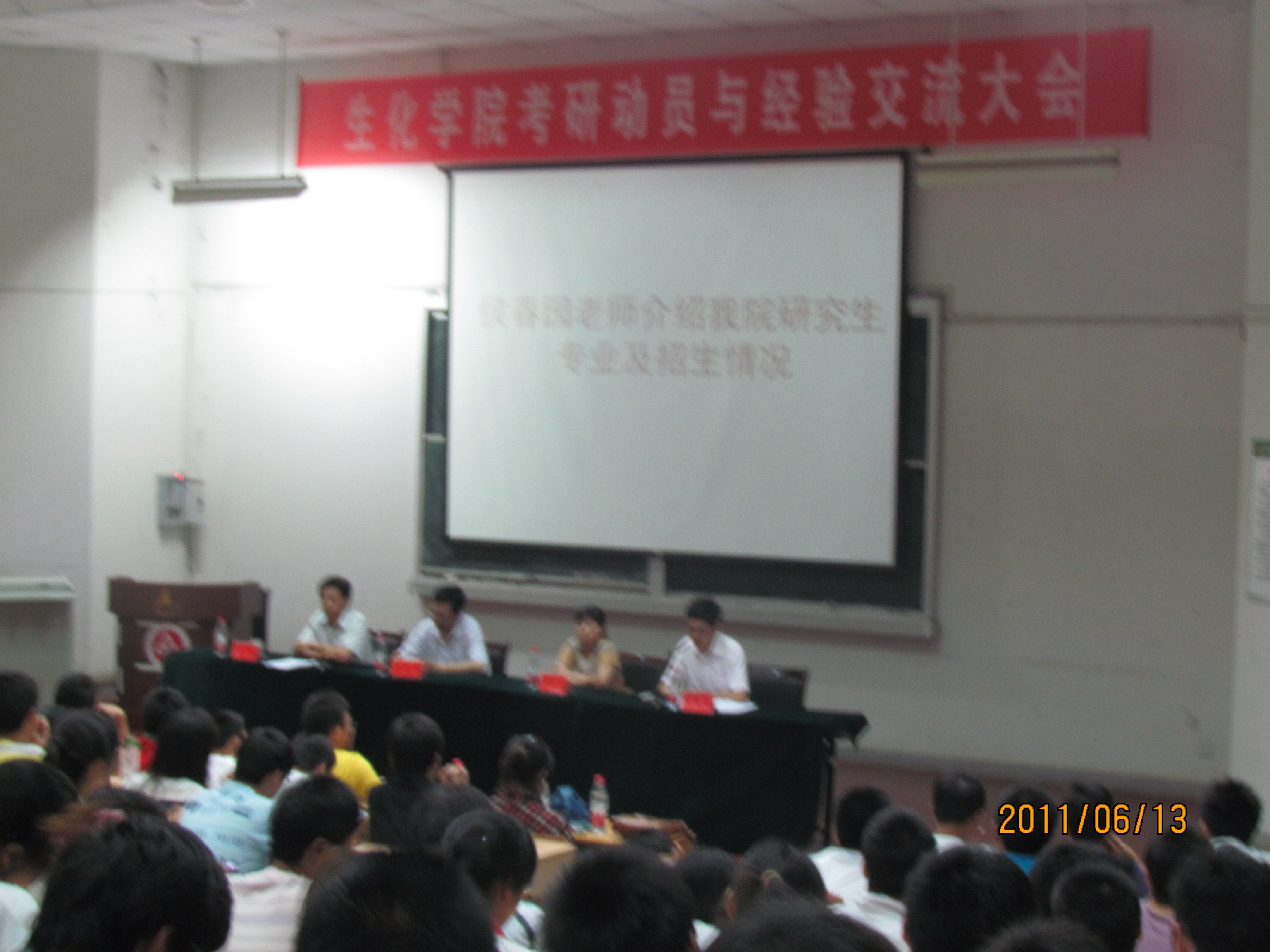 第二阶段,四位来自07级考研成功的同学就考研过程中如何进行准备、复习、调节心态以及考研之后调剂等情况提出了自己的看法。然后他们耐心地回答了台下同学提出的疑问。