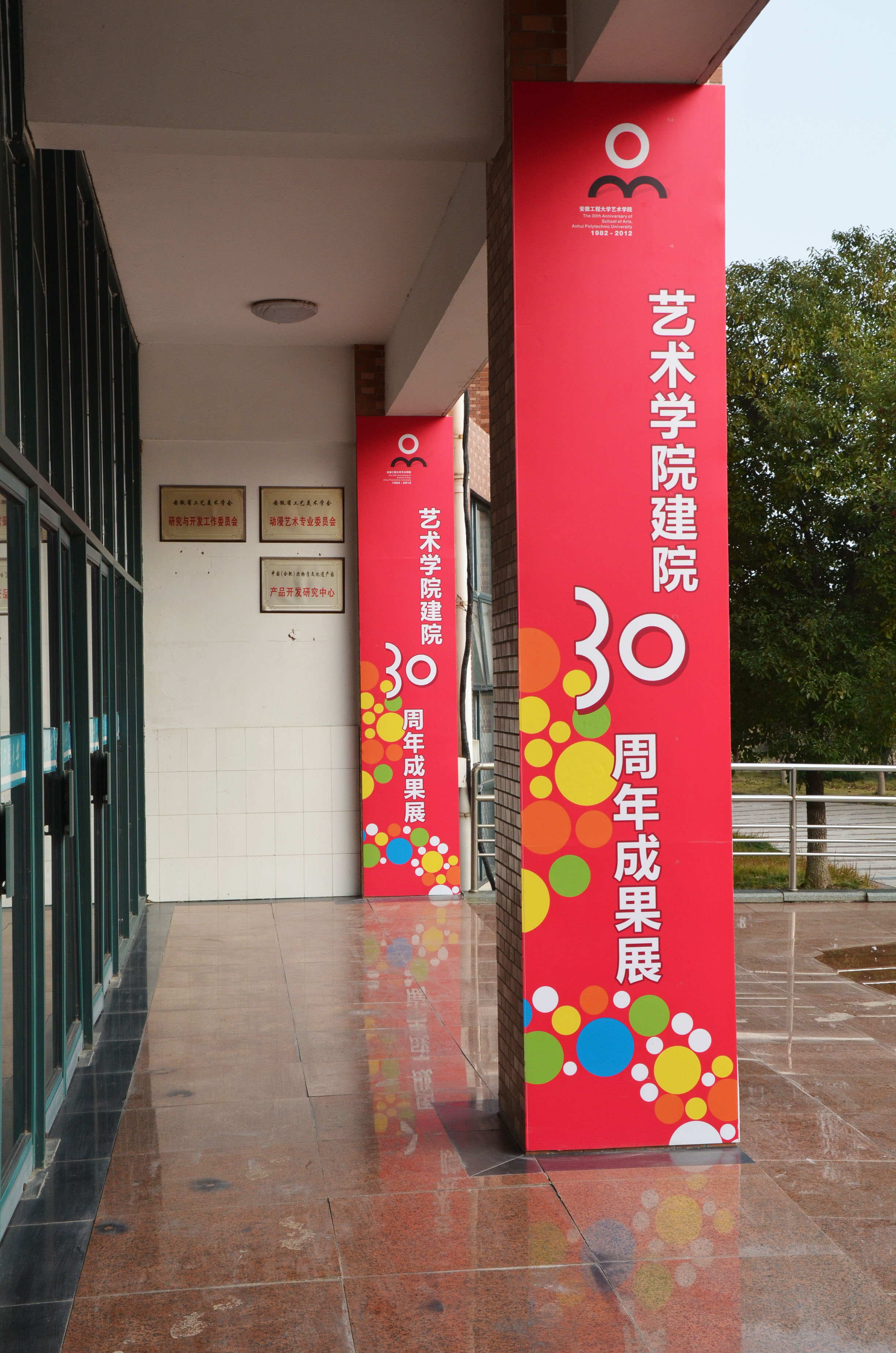 本次展览共分为两部分。第一部分为展厅展览,主要展出各系部、研究中心、学生工作等在建院三十年以来取得的成果,分为科学研究项目、教学研究项目、教师作品、教学团队、精品课程、出版教材、学生工作等几大板块。展板以图片、文字、表格等形式生动地展现了我院近年来教学成果的全貌。第二部分为走廊展览,在一楼走廊展出2012级大一新生的设计思维课程作业。