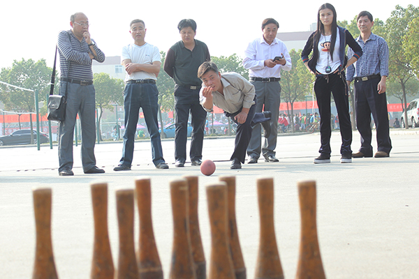 地掷球:抓球、摆臂、松手、球出,这一次,我要击倒十个!