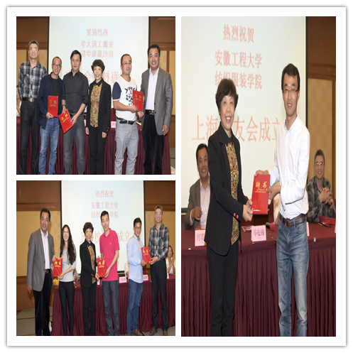 会上,纪天新就学校学院近年来的发展、学校80周年校庆活动以及校友会筹备成立情况进行了介绍。会议通过了《安徽工程大学纺织服装学院上海校友会章程》,推选中国十佳时装设计师、2014年度最佳男装设计师、服装87级毕业生刘勇担任理事会名誉会长,上海既特服饰有限公司总经理、纺织99级毕业生高宇担任理事会会长,通过了安徽工程大学纺织服装学院上海校友会第一届理事会成员名单。随后,马健向上海校友会授牌,与会领导为校友会第一届理事会成员颁发了聘书。上海校友会第一届理事会会长高宇即兴讲话,他表示将竭尽全力同上海校友一起搭建好这个平台,加强交流与合作,为学校的人才培养提供服务,为校友的成长发展提供服务,进一步扩大安徽工程大学纺织服装学院在行业内的知名度和影响力。