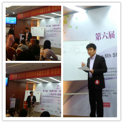 此次比赛分英语专业和商务英语专业两个组进行,每组赛程由复赛和决赛构成。复赛环节以授课的形式进行,选手们可尽情展示其精心准备的授课内容,汪景峰和苏涛以充实的教学内容、巧妙的活动安排、良好的课堂把控能力和流畅的语言表达,分别以英语专业组第一名和商务英语组第三名的成绩成功晋级决赛。决赛以现场说课和即兴回答评委提问两个环节构成。我校两位选手沉着应对,以扎实的教学基本功和敏捷的现场反应能力赢得了评委和现场观众的一致好评。大家纷纷表示,一所工科院校的英语专业能办出如此水平,教学能取得如此骄人成绩实属不易!