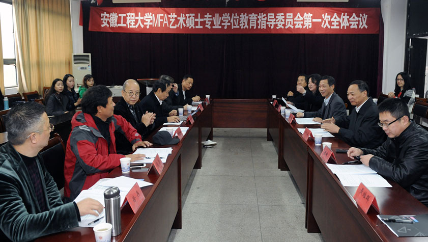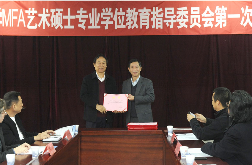 李震对参会的领导专家致辞并表示欢迎,侯大寅宣布校MFA教育指导委员会委员名单。李震为各位委员颁发聘书。承杰就安徽工程大学MFA艺术硕士专业学位的发展和教学实施工作情况向与会人员进行了介绍。