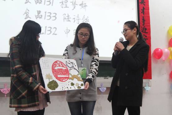 经过初赛的选拔后,十二份精美的手工艺作品脱颖而出,在决赛现场进行展示,其中不乏精巧的篆刻、栩栩如生的剪纸、喜庆的灯笼和别具一格的浮雕。参赛选手逐一介绍了作品的创作过程,从灵感的来源、制作的过程和作品的意义等方面对作品进行了详细的诠释。由五谷杂粮组成的《桃李天下》,新颖别致的《卡里的校园》等作品给观众留下深刻的印象。所有参赛选手演讲完毕,上届女生部部长张甜甜对本次比赛做了精彩点评。最终作品《栋梁之才,硕果累累》和《卡里的校园》荣获本次比赛一等奖。