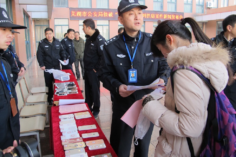 芜湖市公安局刑警支队负责人通报了“11.26”系列扒窃案侦破过程,并就大学生做好安全防范措施进行了宣传。李震对芜湖市公安局迅速侦破系列扒窃案件并成功追缴学生被盗手机表示感谢,代表学校向城东新区派出所赠送锦旗。随即,公安机关开展被盗手机现场返还大会,安徽工程大学、安徽师范大学、皖南医学院等30余名学生在履行相关手续后完成被盗手机的认领工作。公安机关正在开展该案件的后续工作。