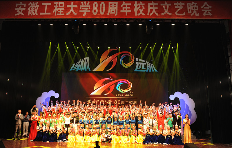 12月28日晚,华灯初上,师生活动中心舞台灯光璀璨、流光溢彩。“扬帆远航”安徽工程大学80周年校庆文艺晚会在师生活动中心举行,学校领导、历届老领导、各界来宾、校友和师生欢聚一堂,用热情的歌舞、深情的赞歌为母校送上80岁生日的美好祝愿。