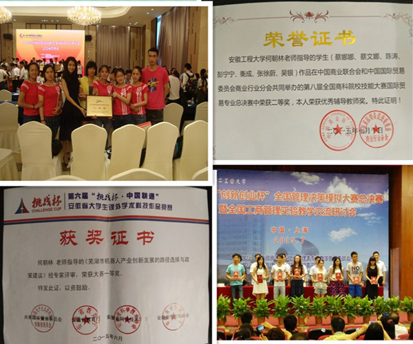 第一课堂的学习让学生储备丰富的理论知识,第二第三课堂充满乐趣,激情与创造性,是第一课堂的延伸及补充, “一二三课堂联动”机制推动了学生整体化知识的吸收,激活了学生的思维和创造性,促进了创新精神与实践能力的提高。去年学生斩获了不少赛事大奖,如第十四届“挑战杯”全国大学生课外学术科技作品竞赛三等奖1项;第八届全国商科院校技能大赛国际贸易专业竞赛全国二等奖;2015年“全国管理决策模拟大赛”全国总决赛一等奖2项、二等奖4项、全国半决赛一等奖10项、二等奖6项。