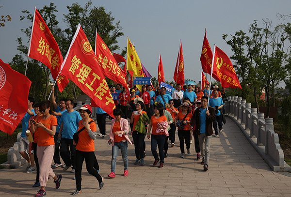 我校“增强体质,快乐出行”教职工健身徒步走活动于4月13日在芜湖市雕塑公园内举行,在学校党政领导的带领下来自各二级党组织的16支参赛队伍约550名选手参加活动,选手们身着蓝色和橙色活动文化衫,一边谈笑风生,一边传递着全民健身正能量。本次活动全程5.6公里。