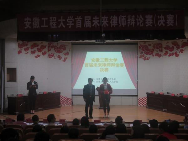 经过一轮轮激烈的角逐,最终法学第二代表队(人文学院)荣获冠军;法学第一代表队(人文学院)、行政管理153班(人文学院)荣获亚军;不死鸟战队(管理工程学院)、法学131代表队(人文学院)荣获季军;大电器成队(电气工程学院)、安工程颜值担当队(跨学院组合)等5支辩论队获优秀奖。来自管理工程学院的何经纬荣获“最佳辩手”称号,来自电气工程学院的李自先、数理学院张鹏、艺术学院的杨思淇、人文学院的刘平等9位辩手获得“优秀辩手”称号。在同学们热烈的掌声中,汪奇燕、丁家平、冯韵东、张春等嘉宾分别为获奖代表队和辩手颁奖,为期一个月的安徽工程大学首届“未来律师”辩论赛也圆满落幕。组委会将根据参赛辩手的表现,组建校辩论队,参加安徽省“未来律师”辩论赛。