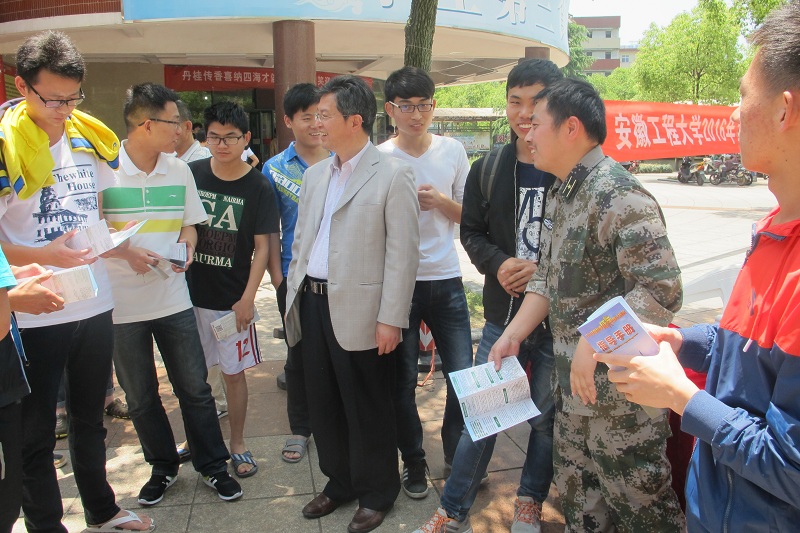 郭兴众会见了鸠江区人武部部长李军一行六人,对双方联合开展大学生征兵现场咨询活动表示肯定。他对我校大学生征兵工作开展情况和鸠江区人武部进行了良好沟通,与前来现场咨询的学生进行了互动,鼓励广大青年踊跃报名参军。