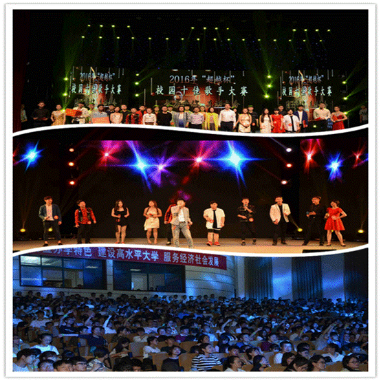 5月14日晚7点,由校团委主办、校学生会承办的2016年“超越杯”校园十佳歌手大赛决赛在师生活动中心华丽上演。南京艺术学院博士、美国西南大学高级访问学者、安徽师范大学音乐学院艺术中心主任余鑫,中国音乐家协会会员、芜湖市音协副主席、教授程伟、安徽信息工程学院团委副书记陈振、校总务处胡春莲以及校团委秘书、校大艺团艺术指导老师陈希应邀担任评委。校团委副书记冉昆玉、赞助商代表及1500名观众也观看了比赛。