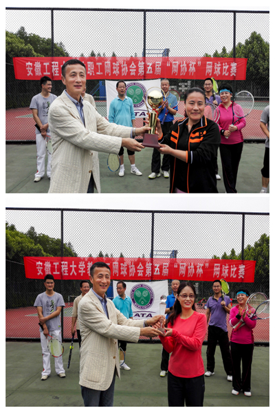 本届“网协杯”比赛吸引了30余名会员参加,理事会根据抽签将参赛选手分成“帅之队”和“威之队”,比赛分女双、混双和男双3个项目进行比赛,经过13场激烈的较量,“帅之队”以8:5的战绩成功卫冕冠军。校工会主席王河出席了颁奖仪式,并为获奖选手颁奖。