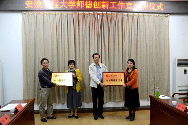 授牌仪式前,在听取了工作室负责人对各自工作室建设方案的详细汇报之后,凤桦首先感谢学校党委、行政的大力支持,对我校工会在师德建设的实践工作中的积极创新给予了充分肯定。凤主席说,安徽工程大学“师德创新工作室”的建设是继“学校行政与工会联席会议制度”之后又一项在全省高校中率先开展的创新工作,是对全总“劳模创新工作室”和全委“名师工作室”建设要求的积极落实和创新实践,对全省教育系统的师德建设的创新发展具有积极引领和示范,前景广阔,大有作为。凤桦同时指出,这项工作既是创新也需要逐步完善,创建不易,形成工作特色更难,他要求工作室负责人要边实践边落实边总结,不断形成实践和理论成果,以师德创新工作室为平台和载体,为安徽高校师德建设提供可复制的宝贵经验。