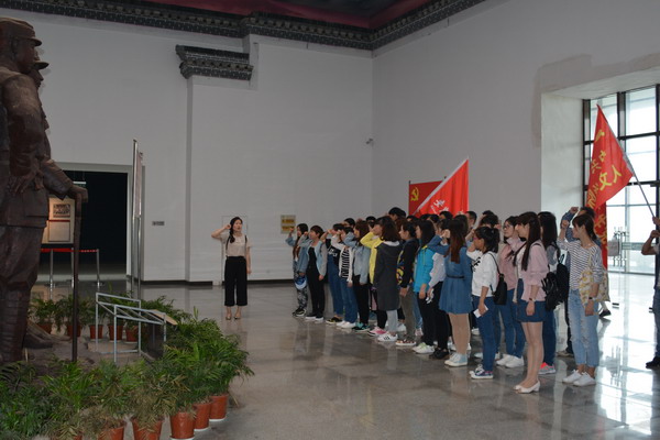 随后,学员们参观了新四军史料陈列馆,一件件斑驳的实物、一张张珍贵的照片,使大家重温了那段峥嵘岁月,仿佛又回到了那场风云惨淡、壮怀激烈的战事中,学员们都深深地为先烈们克服万难、抗争到底的革命精神和将生死置之度外的英雄气概所感动。参观结束后,全体学员在法学学生党支部书记谢红翠的带领下,重温了入党誓词,坚定洪亮的声音响彻陈列馆。