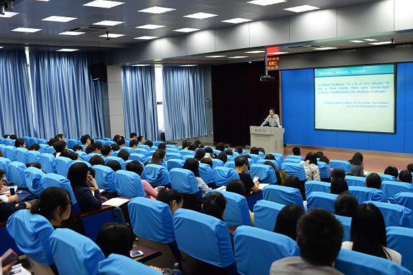 杨自伍流利的英文和多年从事翻译工作的经历给全体师生带来耳目一新的感觉,尤其对语言、文化和翻译的深刻阐述和对翻译教学的建议让大家受益匪浅,近两个小时的讲座在师生的互动问答和热烈的掌声中画上了圆满的句号。