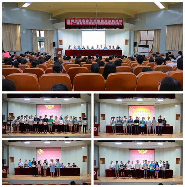数理学院副院长、数学建模总教练王传玉对第十二届芜湖高校数学建模联赛的基本情况作了总结,宣读了获奖名单。主席台领导为获奖队伍的学生代表颁发了奖品和荣誉证书。