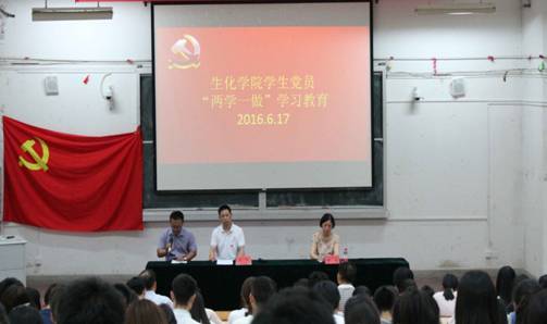 在生化学院“两学一做”学习教育开展如火如荼之际,6月17日下午,生化学院党委在2教报告厅召开了生化学院全体学生党员大会,就学院“两学一做”学习教育工作进行再部署、再推进。学院党委副书记章兵出席了大会,各个学生党支部书记和全体党员参加了大会,大会由团委书记胡云主持。