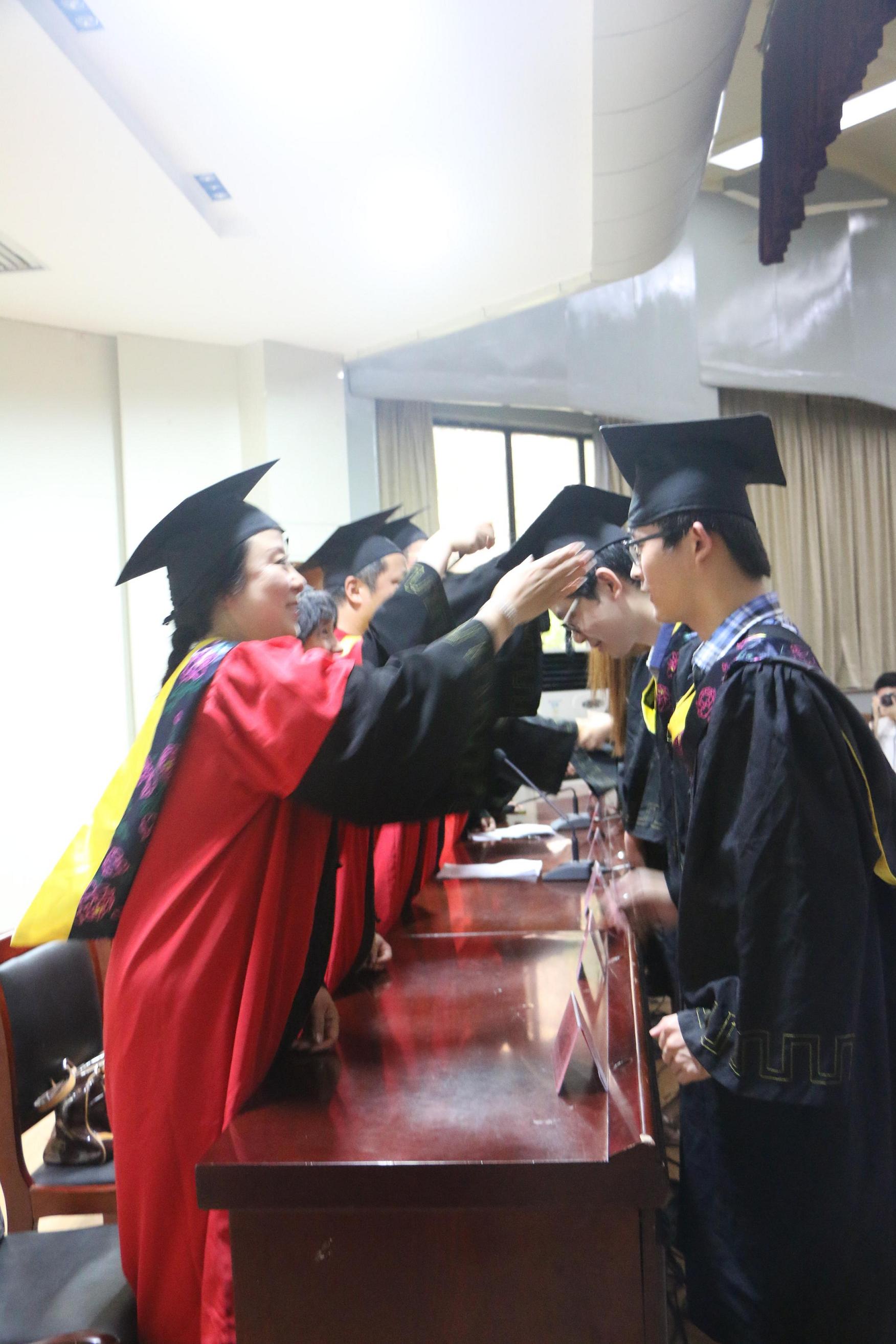 典礼在庄严的国歌声中拉开帷幕。院长毕松梅宣读了授予2016届本科生学士学位的决定,2016年安徽省品学兼优毕业生表彰文件以及2016年校优秀毕业生表彰文件。主席台就座的领导、老师逐一为获得学位的同学扶正流苏,一个轻轻的握手、一声仔细的叮咛,充分表达了学校
