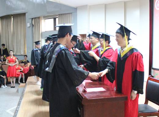 校教务处处长陶庭先、学生处处长张开炳、团委副书记冉昆玉、生化学院党委书记王弘、院长陶玉贵、副院长薛正莲、副书记章兵、还有各系部教研室主任、毕业班辅导员以及2016届毕业生参加了毕业典礼。典礼由副书记章兵主持,在全体奏唱庄严的国歌中拉开序幕,陶玉贵院长宣读了2016届毕业生毕业的决定,宣告621名同学正式毕业。陶庭先处长宣读了余年等14名校优秀毕业生和孟醒等19人省品学兼优毕业生的名单,优秀毕业生代表上台接受表彰。随后主席台领导为毕业生代表颁发了毕业证书,为获得学士学位的毕业生扶正流苏。全体毕业生在团委书记胡云老师的带领下的庄重宣誓,将毕业的仪式感推向高潮。