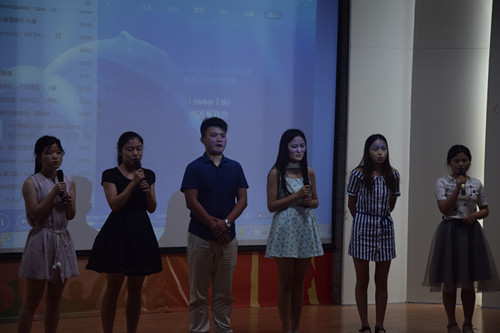 惜别初夏,青春逐梦。联欢会在英语121班同学带来的歌舞串烧中拉开帷幕。她们用舞蹈和歌曲表达了对校园、老师、同学们的依依惜别之情。英语122班储婧为大家献上歌曲《那些花儿》,“我曾以为我会永远守在她身旁,今天我们已经离去在人海茫茫……”,悠悠歌声,动情的歌词,扣动了每一个人的心弦。一年级同学代表带来了两首英文歌曲《Never Saying Goodbye 》和 《Stardust》,表达了对毕业班学长学姐的深情祝福。毕业班辅导员都一一上台表演,表达了对全体毕业生的美好祝愿,将会场氛围推向高潮。各系部专业老师为同学送上了别具一格的节目,博得大家热烈的掌声。中场游戏“你比划,我来猜”,师生共同参与,相互配合,交流了感情,加深了情谊。