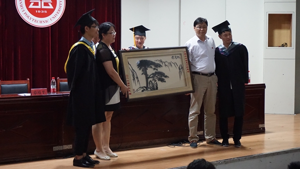 最后,周鸣争发表了热情洋溢的讲话,他代表学院向圆满完成学业,即将开启人生新征程的计算机与信息学院2016届334位毕业生表示最热烈的祝贺;向关爱教导学生成长成才的领导、家长、老师表示衷心的感谢和崇高的敬意!他和毕业生们共同回顾了安徽工程大学四年来的发展变化,回顾了毕业生们四年来的骄人成绩,向即将离校的学子们表达了殷切的希望:要牢记尚德敏学,唯实惟新的校训,志存高远,脚踏实地,肩负起更大的责任,将个人的梦想融于团体,为国家和社会增添更多的正能量。最后,他祝愿全体毕业生一路顺风,前程似锦,万事如意!