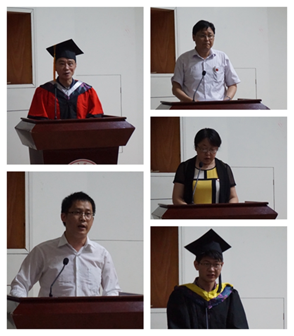 毕业典礼在庄严的国歌声中正式开始。汪军宣读了关于授予2016届毕业生学士学位的决定,周鸣争为每一位毕业生扶正流苏,章靖平宣读了我院2016年安徽省品学兼优毕业生和2016届优秀毕业生的表彰名单,主席台上就座的老师为受表彰的毕业生颁发了荣誉证书。典礼上,教师代表刘三民博士向毕业生表达了真挚的祝福,从做人、做事、感恩三个方面提出了殷切期望,并表示母校永远是同学们最坚实的后盾。2012级朱子龙代表毕业生发言,表达了对学校和老师的感恩之情,也回首了大学四年的点点滴滴,祝愿母校蓬勃发展。