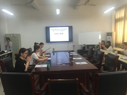 6月23日下午,人文学院于9教5楼会议室召开了2016年人文学院“暑期三下乡”实践项目选拔汇报会。院党委副书记金艾裙、团委书记黄江胜、辅导员谢红翠参加汇报会。