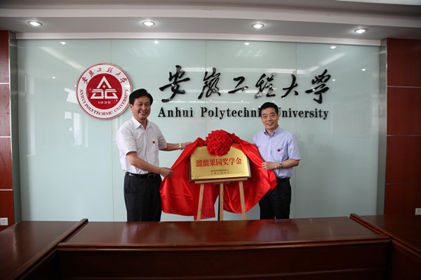 会上,李震、胡金贵分别代表学校和繁昌县签订了校政合作协议,校教育发展基金会与安徽溜溜果园签订了“溜溜梅奖学基金”协议书,刘宁与张祖武共同为“溜溜果园奖学金”揭牌。