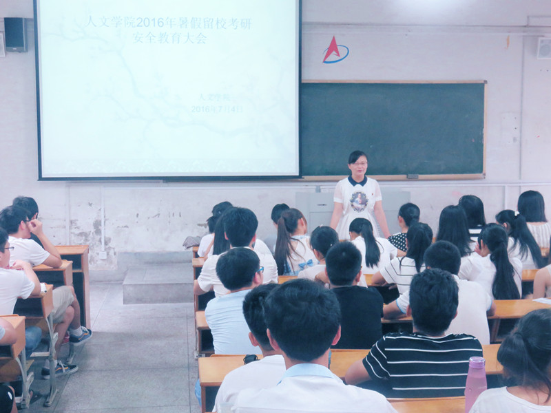 为做好暑期留校考研学生的安全教育工作,落实学校有关假期留校学生安全问题的会议精神和文件要求,在前期对申请假期留校学生资格严格审查的基础上,7月4日下午两点半,人文学院在4教112召开了暑期留校考研安全教育大会。院党委书记伊长文、党委副书记金艾裙、辅导员王艳芝、梅琼以及全体暑期留校学生参与了此次会议。会议由王艳芝主持。