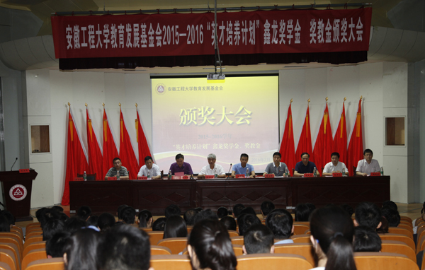 会上,发展规划处处长,基金会秘书长曹安照宣读了《关于安徽工程大学教育发展基金会“英才培养计划”2015-2016学年鑫龙奖学金、奖教金评选结果的通报》。
