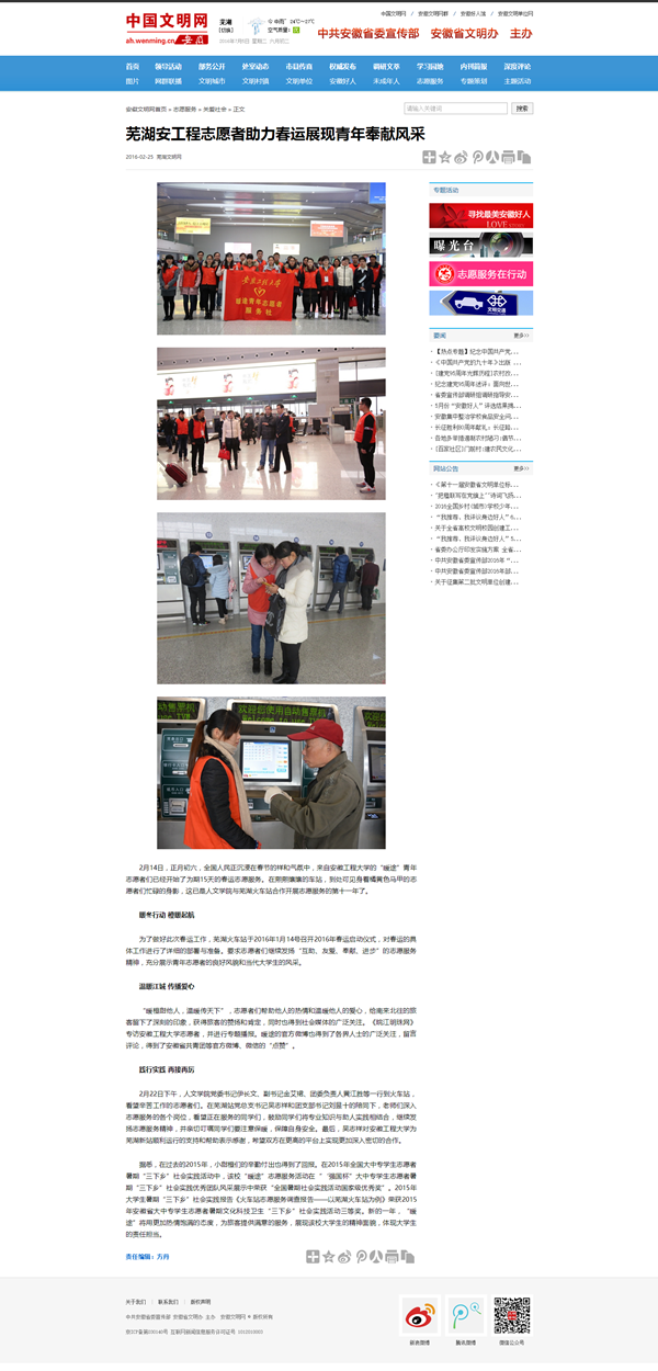 2016年春运志愿服务媒体相关报道: