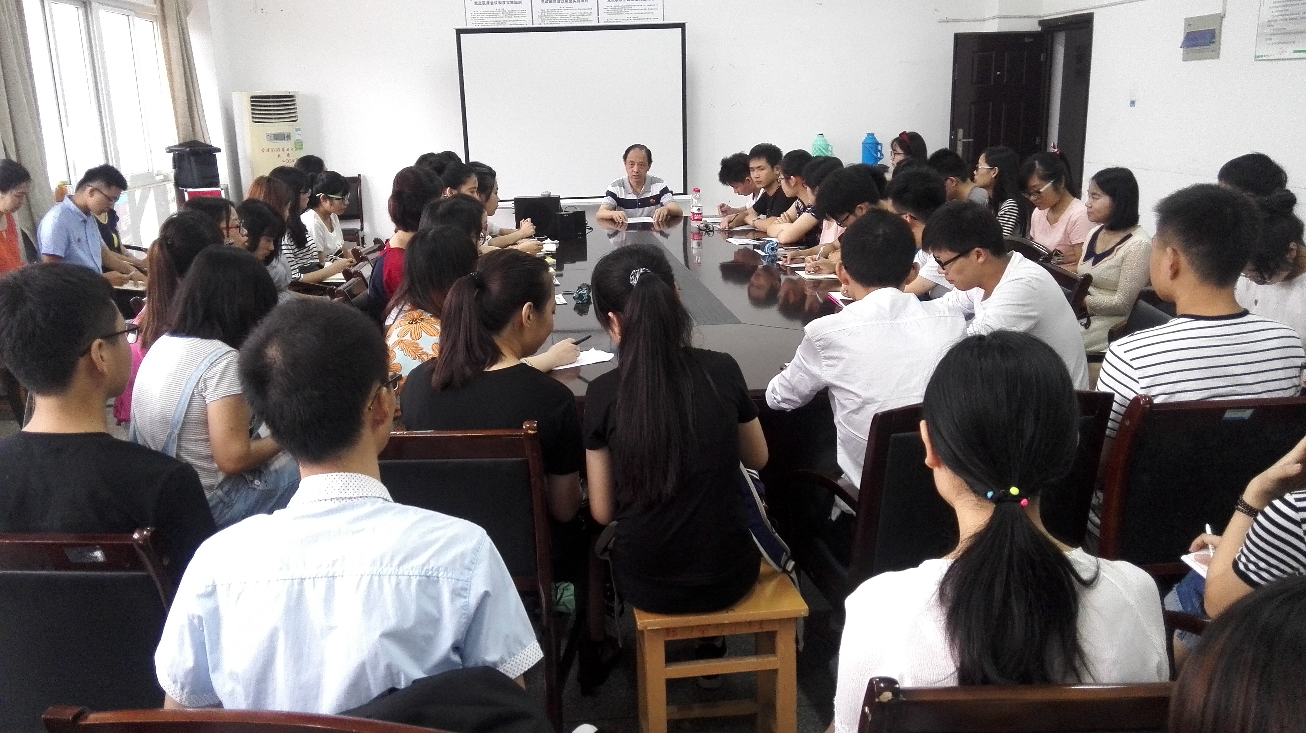 7月11日,留校44名学生党员按照学院暑期“两学一做”学习教育实施方案,在学院会议室进行首次集中学习,汪张林作动员讲话。他说,“两学一做”学习教育就是要把学习教育、从严治党向基层延伸,把范围扩大到全体党员,根本目的是进一步解决党员干部在思想、组织、作风、纪律等方面存在的问题,始终保持党的先进性和纯洁性,使党的细胞更加充满活力,希望广大党员同学要克服困难,按照学院统一部署,深刻领会学习的意义,服从纪律要求,认真学习,将学院暑期“两学一做”学习教育工作做实、做好。