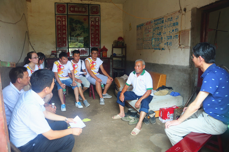 同学们还走访了白塔畈乡项冲村委会,通过大学生村官的介绍,了解村里的贫困人口情况和村里的扶贫政策落实情况。同学们顶着炎炎夏日,在相关乡镇团委书记和扶贫工作站站长的指引下,走村入户,与建档立卡的贫困群众促膝交谈,调研中央、省委精准扶贫政策在当地落实情况,了解当地群众的切身感受,并开展了问卷调查。
