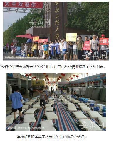 9月6日的安徽网以《安徽工程大学新生报到学姐们展优美舞姿迎接》为题,从迎新学姐、志愿者、后勤工作人员等多个层面,用图片新闻的形式全方位展示了我校的迎新工作。