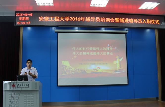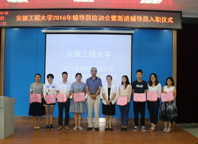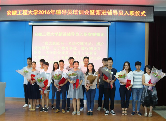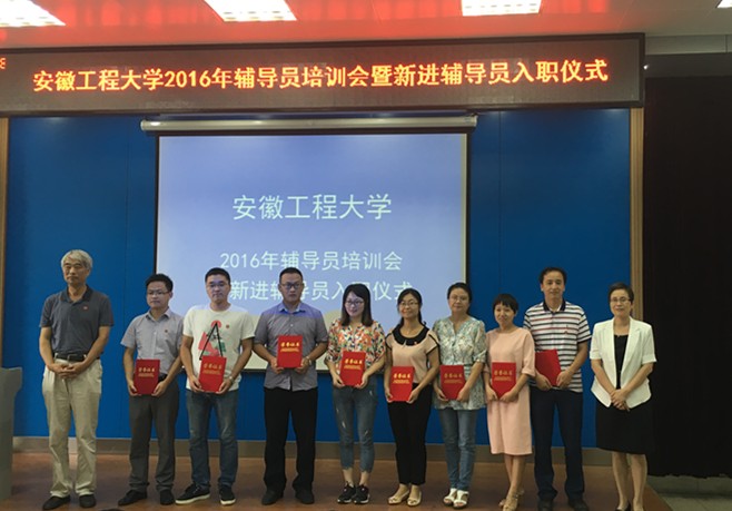 在第32个教师节来临之际,9月8日上午,学校举行2016年辅导员培训暨新进辅导员入职仪式。校党委书记陈其工,党委副书记苏国红出席仪式并讲话。校党委组织部、党委宣传部、教务处、人事处、校团委等部门主要负责人,各学院党委学生工作负责同志,全体辅导员、新生代表等参加仪式。校党委学工部部长张开炳主持培训会和入职仪式。