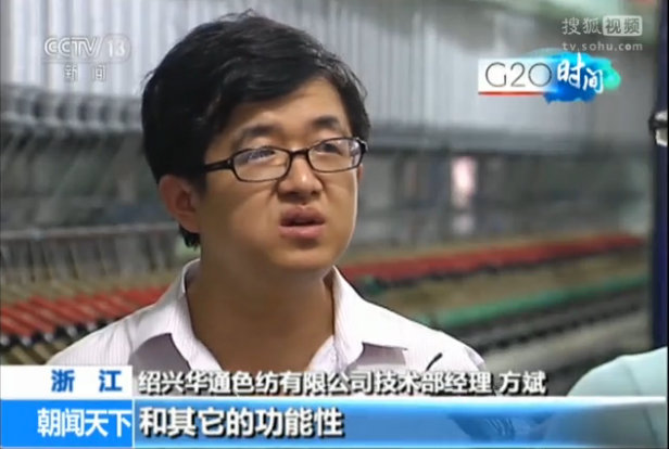 作为G20峰会服装面料研发团队负责人接受中央电视台采访