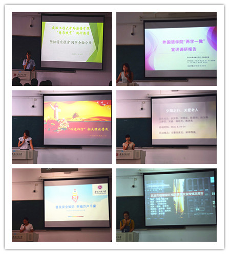 青春建功十三五,实践归来话成果。9月18日下午,外国语学院2016年大学生暑期社会实践成果分享评比会在六教110举行。校团委副书记郭广春和部分兄弟学院团委书记应邀出席并担任评委。