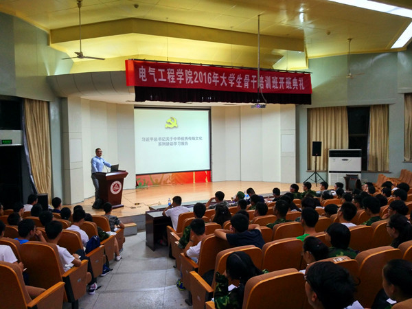 为加强电气学院学生干部队伍建设,引导学生干部健康成长,进一步提高学生干部的管理水平和综合素质,更好地发挥学生干部的桥梁纽带作用,电气工程学院2016年大学生骨干培训班于9月21日正式开班,学院党委副书记郭全根出席了开班仪式,开班仪式由黎新宏主持。