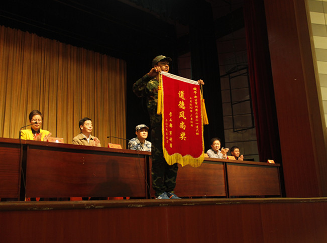 会上,刘宁向承训部队赠送了锦旗。教务处处长陶庭先宣读了《关于表彰2016年新生军训先进集体和先进个人的决定》。宣传部部长孙浩然宣读了《关于给予2016级新生军训团二营十一连六排通报表扬的决定》。在激昂的颁奖曲中,受表彰的先进集体、先进个人代表上台领奖。