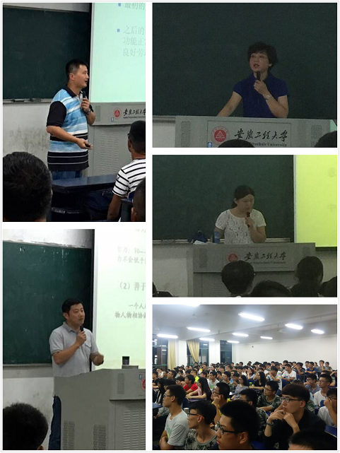“没有疾病就是健康吗?”“大学生心理健康的标准有哪些?”来自学工部的二级心理咨询师杜松涛、汪隽老师分别以《入学教育心理健康篇》、《调整心态、积极适应,做最好的自己》为题,以云南大学的马加爵、西安音乐学院的药家鑫等真实案例引导新生深刻反省自己的行为方式和思想活动,分析了导致心理适应问题产生的原因,并就加强和改进大学生心理适应教育对策提出大学生心理健康三项基本原则和七条大学生心理健康标准,帮助新生培养健康的心理,尽快适应大学生活。