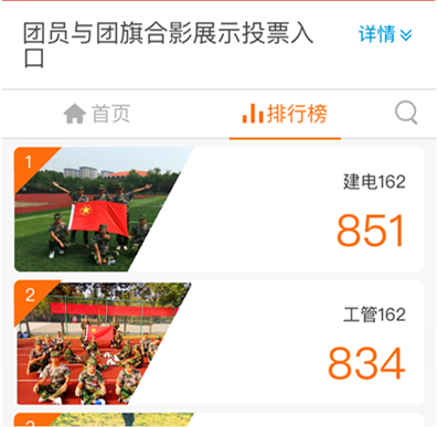 截止9月29日,共收到全校12个学院112个新生班级团支部提交的400余份摄影作品。一件件作品或是立足学科专业特色,或是结合95后青年学生特征,鲜活展现了新生团支部的活力和凝聚力,生动尽显新生团员的青春风貌。向团旗的奔跑,是青春路途上的不悔追求;向团旗的致敬,是年少岁月里的崇高信仰;团旗在前方,是对明天美好的希望;团旗在大家中央,是团结不变的力量。9月30日0:00,校团委利用官方微信平台,按照“团支部、团干、团员”三个类别,对各班级团支部提交的摄影作品进行线上展示和投票。截至10月7日23:59分,安徽工程大学团委微信“我与团旗合个影”活动浏览量累计达161352人次,总投票数达37052次。