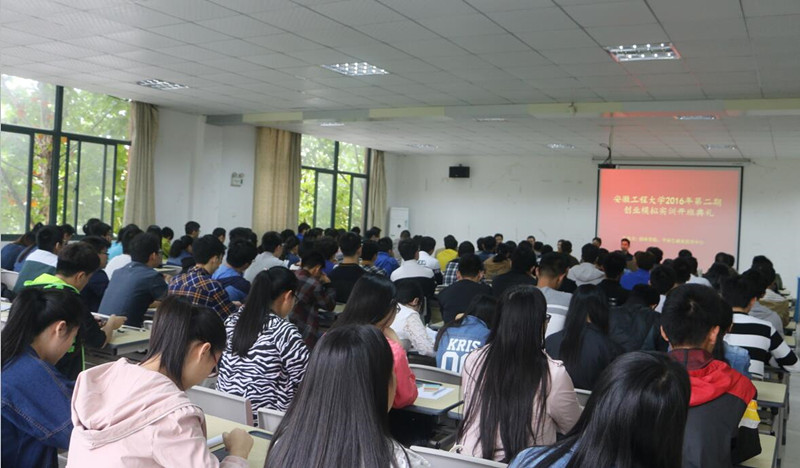 10月19日下午2:30,我校2016年第二期创业模拟实训开班典礼在第二招聘大厅举行,校党委副书记、创业学院院长苏国红,芜湖人社局调研员梁军,芜湖市公共就业和人才服务中心主任姬增胜,学生处副处长、创业学院常务副院长李卫东及全体培训学员参加了典礼。典礼由学生处处长、创业学院副院长张开炳主持。