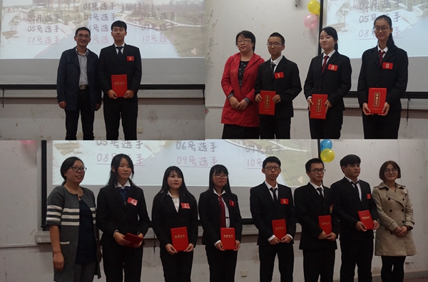 经过初赛的赛选,共有10位同学入围决赛,决赛分为两个环节,第一个环节由选手进行六分钟的演讲,第二个环节由评委老师进行提问和点评。10位选手分别从学习和生活两个大方面对自己的大学生涯进行规划,精心准备的PPT加上背景音乐,丰富的计划与精彩的演讲令在场观众深受启发,获得激励和鼓舞;评委老师的精彩点评也使大家称赞不绝。来自物联网162的朱巾亭同学以七种不同的花来给自己大学生涯进行分类规划,新奇的创意令人耳目一新。来自计算机161的刘思同学从责任的角度阐述如何完善自我并且依靠班集体、带动班集体做一名合格班长的决心。最终来自计算机162的路建浩同学以沉着稳重的演讲和冷静机智的回答获得了本次比赛的第一名。