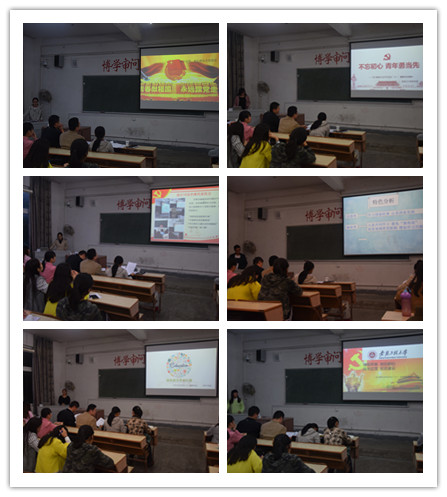 全院15个团支部代表依次上台作PPT陈述,她们通过生动有趣的讲解配合着照片和视频的展示有条不紊地将团日活动情况详细地展现在大家面前。现场气氛热烈,高潮迭起,整个评选活动一直都在既严肃又融洽的氛围中顺利进行。每个团支部的团日活动都丰富多彩,各具特色,如观看视频、唱红歌唱团歌、重温入团宣誓、团章知识竞赛、小组讨论、分享党员故事、网络文明签名承诺等等,有的团支部还邀请了参加校“两代会”的代表们同大家分享了“两代会”的会议精神。各支部均以学习和实践相结合的方式让同学们深刻认识到每一个团员都应该坚定理想信念,增长知识本领,锤炼品德意志,做“六有”大学生。接着,杜松涛对此次活动进行了点评。