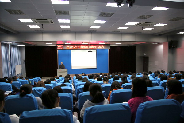 解光云首先介绍了全球化对教育国际化影响的时代背景,并针对(UNESCD)世界教育报告及教育国际化的评判标准进行了详细解读,深入分析了全球化对教育的影响,指出教育要尊重生命和人类尊严,教育是全球公共利益。解光云运用大量的数据重点讲解了美国、中国台湾、香港地区等高校的教育国际化实例并结合我国教育国际化的实际情况指出教育国际化的新时代已经到来,教育创新能力必须要在学习和分享世界其他国家的成功经验中才能得到提高。报告结束后,谢光云和与会学生进行了互动,对他们提出的问题一一作了解答,现场气氛非常活跃。
