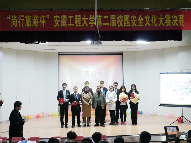为加强学生安全防范意识,提高学生自我管理与自我保护能力,学校于11月上旬举办第二届校园安全文化预赛、复赛,共计二千余人次参加,历时一个月。经过学院初赛笔试的选拔,校级复赛的激烈角逐,最终有8支代表队脱颖而出进入决赛。决赛分为二轮,第一轮分为必答题、风险题、选答题三个环节;第二轮为各参赛队代表以PPT形式进行校园安全主题演讲。比赛现场气氛活跃,参赛选手激情高涨,从各自不同的角度诠释大学生安全的重要性。台下学生不时掌声送给选手们。选手们经过紧张的比拼,人文学院行升161班获得一等奖,机械学院测控152班和生化学院食品151班获得二等奖,电气通信153班等其它组合队获得三等奖。
