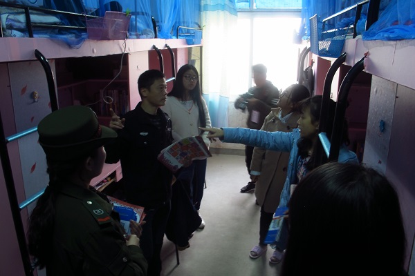 随后,消防官兵和保卫处消防专职人员走进学生宿舍,要求学生结合所发放的消防安全手册和宣传彩页,认真学习,查找身边存在的消防安全隐患,加强防火检查,不使用大功率电器,不私拉电线,遵守消防安全管理规定,确保生命财产安全。