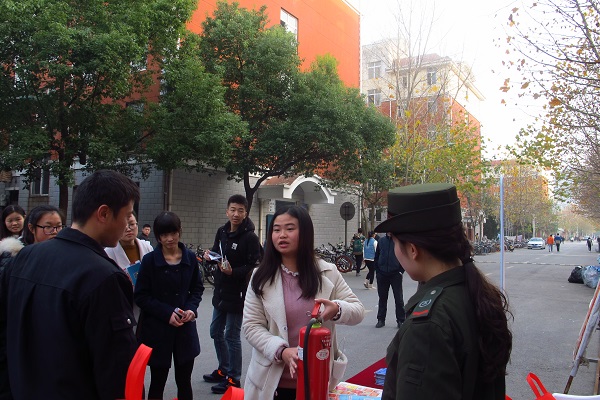 为了深入贯彻落实《安徽省教育厅转发安徽省人民政府办公厅关于印发全省冬春火灾防控工作方案的通知》精神,提高广大学生消防安全意识,打造平安和谐校园,12月7日下午,学校保卫处、芜湖市消防支队联合在女生宿舍区开展消防安全宣传教育进校园、进学生宿舍活动,人文学院学生现场参与互动。